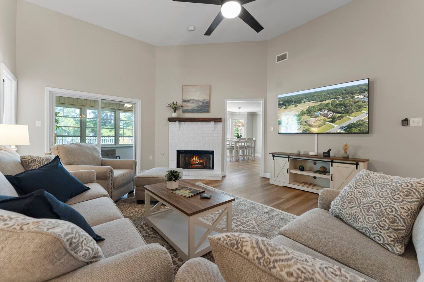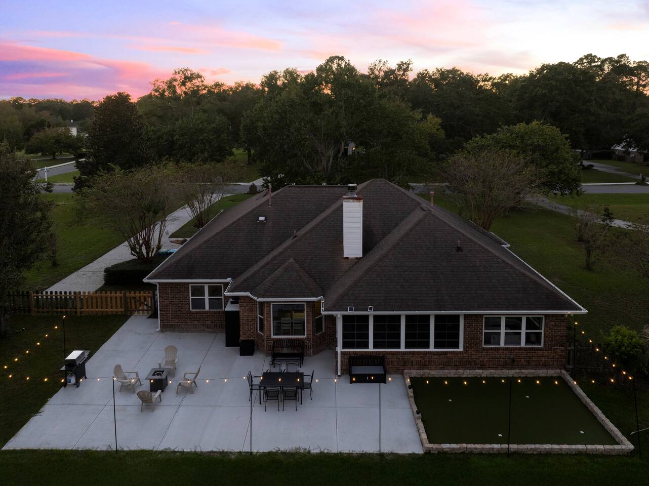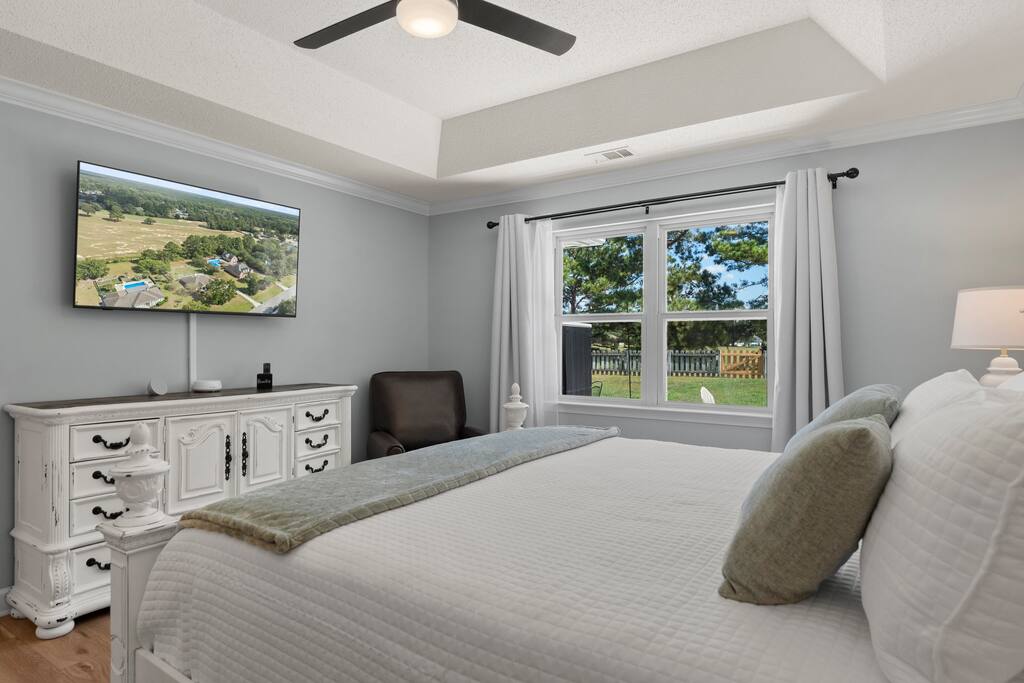 Guests have full access to the entire home, including all rooms, the backyard with putting green, games, and fire pit, plus the enclosed porch. You’ll also enjoy neighborhood amenities just steps away—golf, bar & grill, pools, tennis, and pickleball.