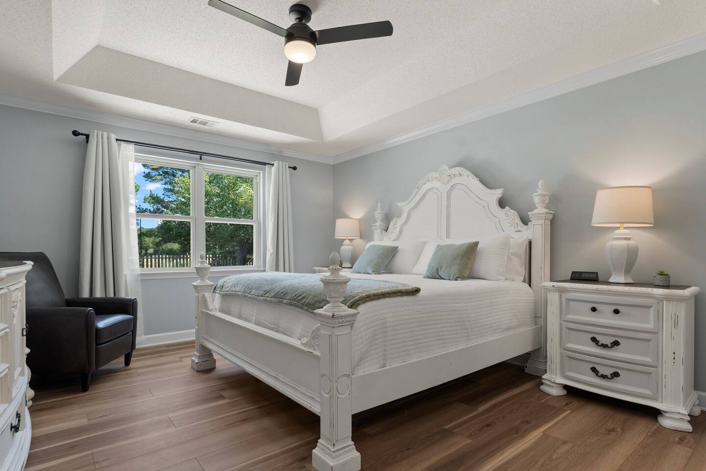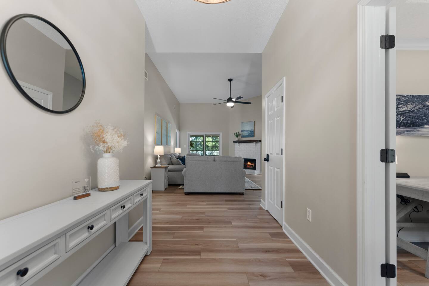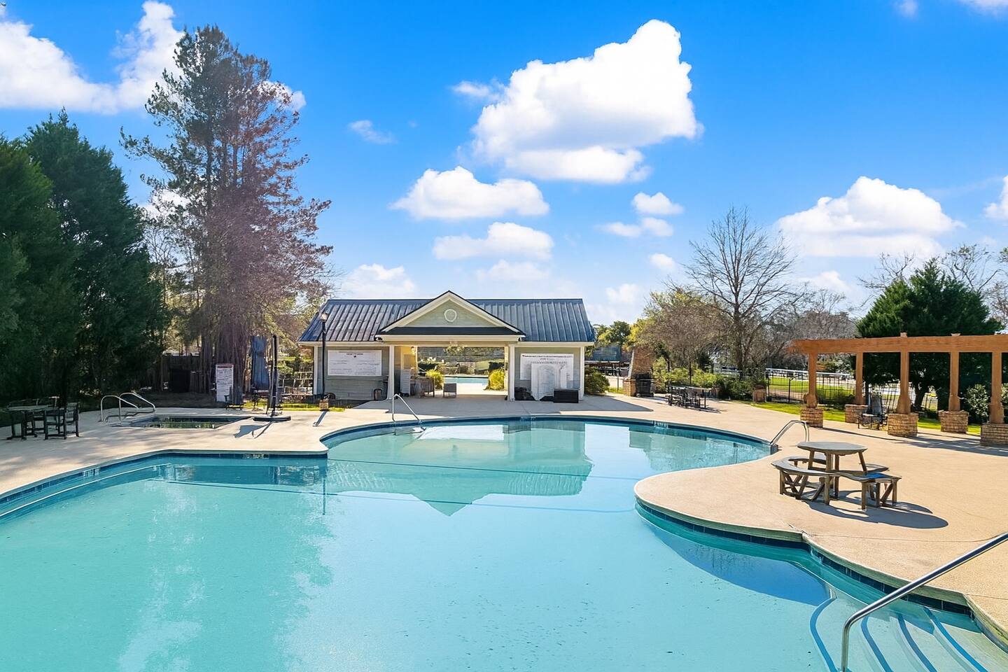 Guests have full access to the entire home, including all rooms, the backyard with putting green, games, and fire pit, plus the enclosed porch. You’ll also enjoy neighborhood amenities just steps away—golf, bar & grill, pools, tennis, and pickleball.