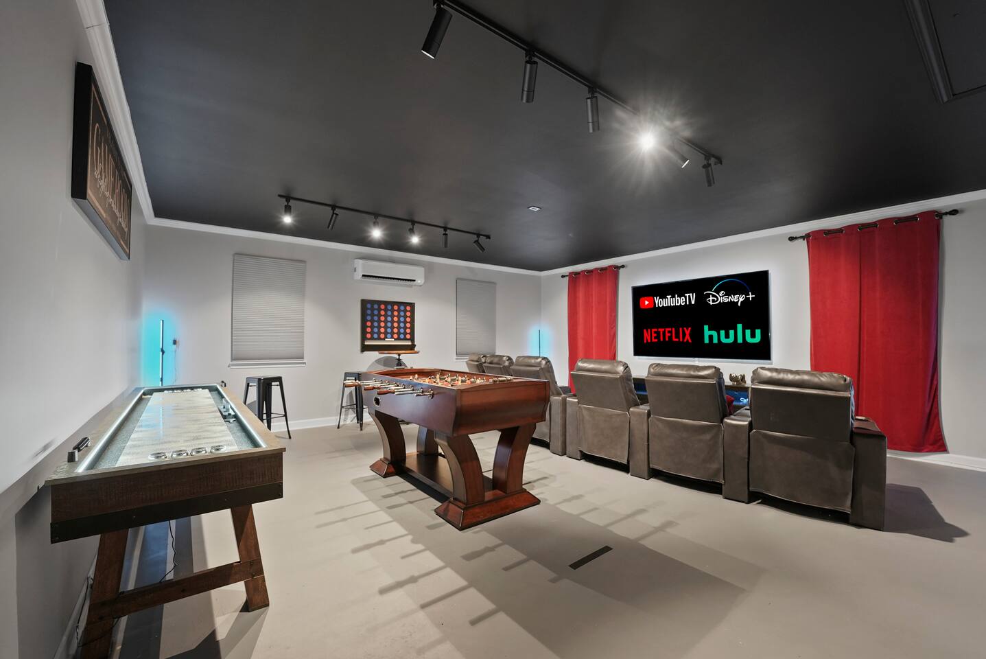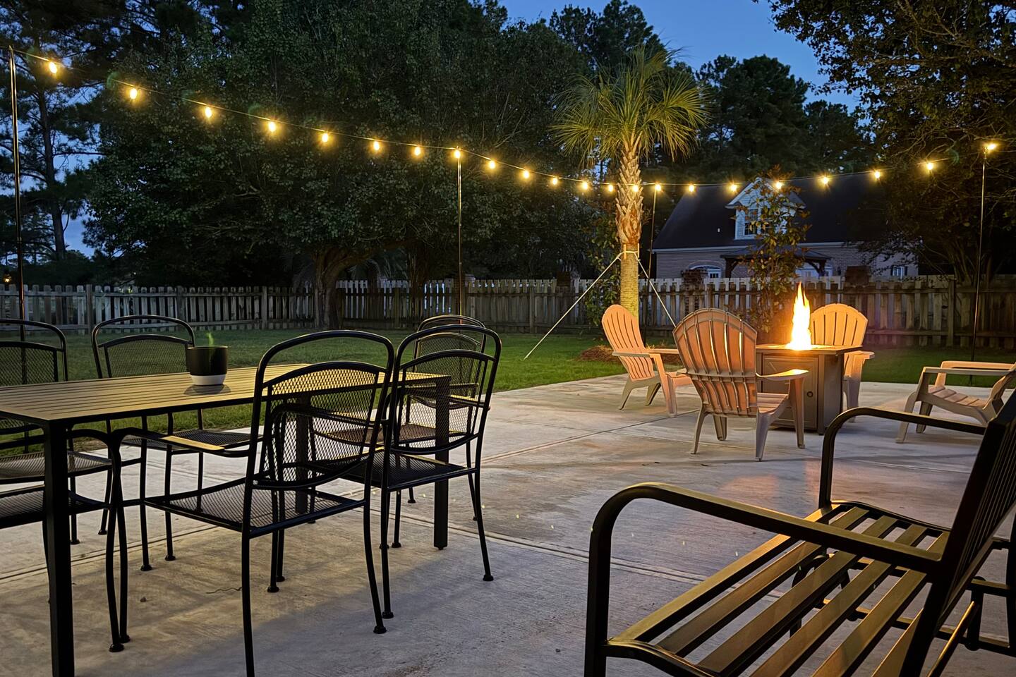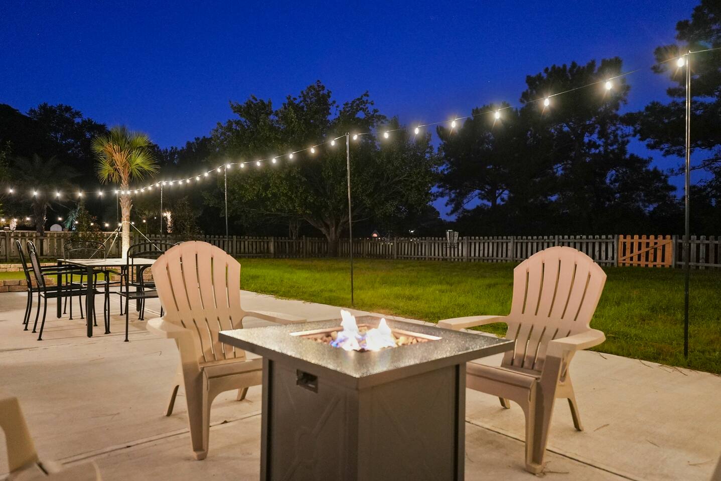 SLEEPING ARRANGMENTS - Bedroom 1: 1 King Bed; En-suite; 55” TV - Bedroom 2: 1 Queen Bed - Bedroom 3: 1 Full Bed - Bedroom 4: 2 Twin Beds - Additional Sleeping: 1 Portable Crib KITCHEN & DINING - Stove/Oven, Refrigerator, Microwave, Dishwasher - Fully Stocked Kitchen; Drip Coffee Maker & Keurig - Dining Table (6), Barstools (4) - Board Games INDOOR LIVING - Theater (86” TV)/Game Room (Shuffleboard, Foosball, Darts) - Living Room (75” TV) - Office w/ Massage Chair - Enclosed Porch (Double Egg Chair, Rocking Chairs) - Dining Table (6), Barstools (4) OUTDOOR LIVING - Putting Green (15x20) - Bistro Lights - Fire Pit (gas) - Grill (gas) - Dining Table - Lawn Games: Fowling, Cornhole, Kan Jam, Disc Golf, Giant Jenga, Boccee Ball, Football, Soccer ball TV’s & WIFI - Smart TV’s (86” Theater Room, 75” Living Room, and 55” Master Bedroom) - Complimentary streaming included: Youtube TV, NFL Sunday Ticket, Netflix, Disney +, Hulu - Nintendo Switch w/ Games (Mario Kart, etc.) - 1 Gig High Speed Wifi w/ 3 routers GENERAL - Central Heating & A/C, Ceiling Fans - Laundry (Full Size Washer & Dryer, Detergent, Ironing Board) - Premium Linens/Towels, Complimentary Toiletries, Hair Dryers - Keyless Entry PARKING - Driveway (3-4 vehicles) FAQ - No Shared Amenities - Exterior Security Cameras (facing out) NEIGHBORHOOD DETAILS - Quiet & Established Neighborhood - 4 Homes away from Clubhouse - City Club Golf Course (@Clubhouse) - Greenside Bar & Grill (@Clubhouse) - 2 Pools -Seasonal (@Clubhouse) - Tennis Courts & Pickleball (@Clubhouse) GEOGRAPHY - 1 Mile to Local Grocery, Stores, & Restaurants - 15 Minutes to Airport - 15 Minutes to Pooler - 30 Minutes to Downtown Savannah - 45 Minutes to Hilton Head - 55 Minutes to Tybee Island