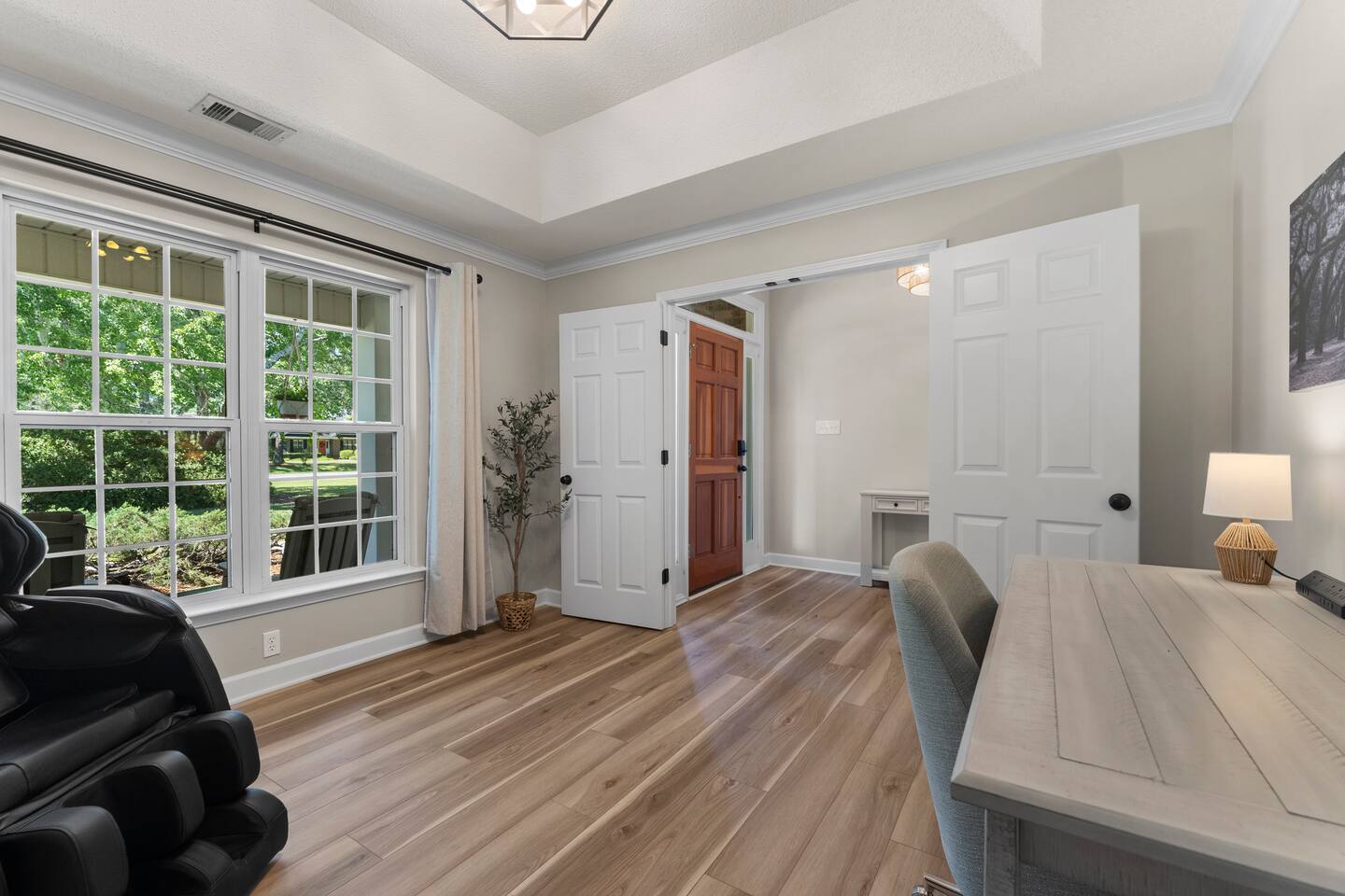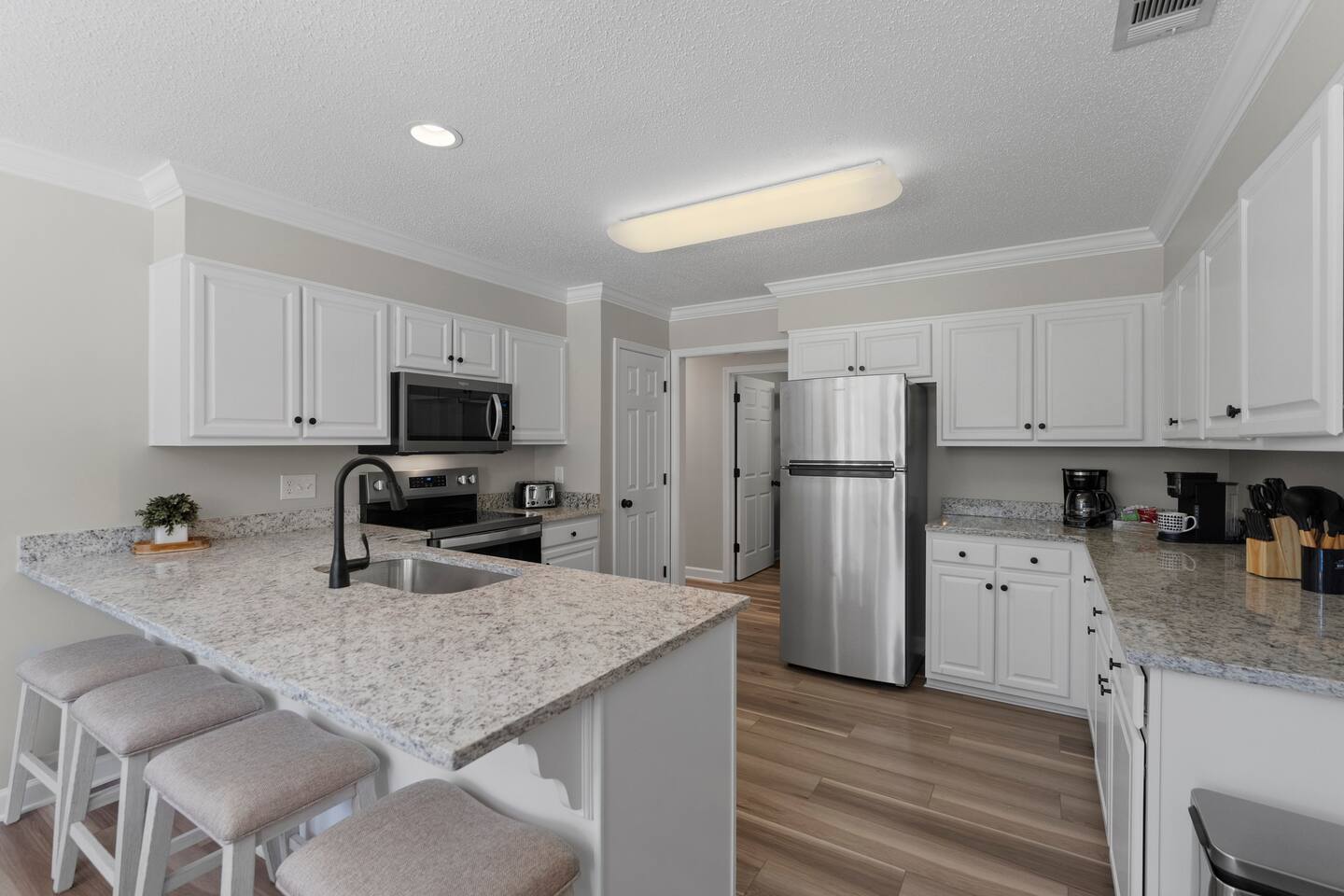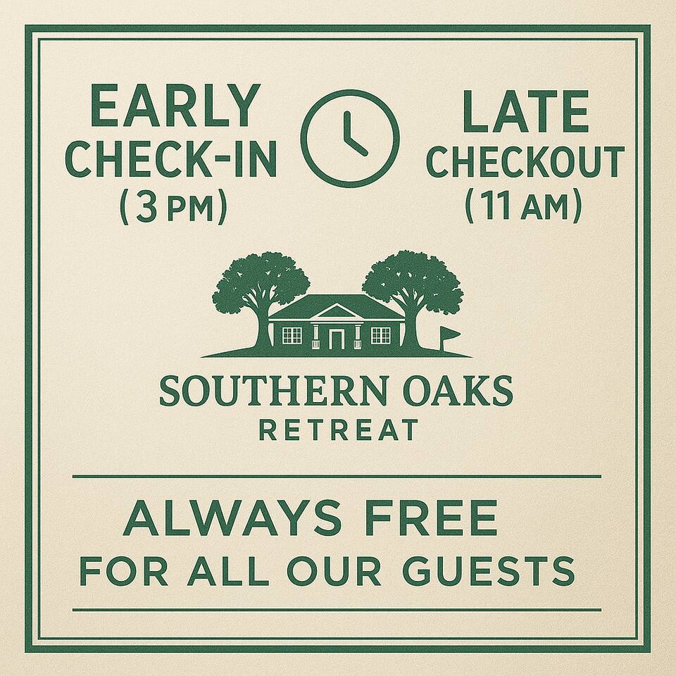 Welcome to Southern Oaks Retreat! Our newly renovated home offers a game room/theater (86" TV, Nintendo, shuffleboard, foosball, darts), spacious living room (75" TV), office w/ massage chair, and master w/king & en-suite. Backyard features putting green, disc golf, fire pit, bistro lights & lawn games. YouTube TV, NFL Sunday Ticket, Netflix, Disney+, Hulu...on us! New furniture & appliances, stocked kitchen, laundry, plus golf, pool, tennis & pickleball just steps away with plenty of parking.